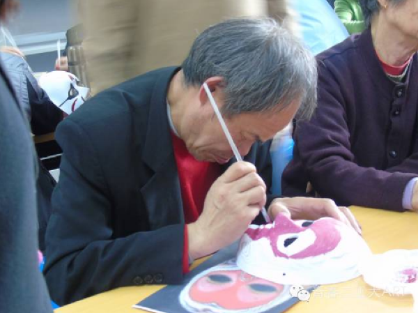 在用来绘制脸谱的面具下发后,老人们了解了手中工具的用途,并在志愿者细心的讲解与辅导下,聚精会神地绘制起自己的脸谱。在这过程中,老人们还会时不时地向志愿者提问,更有老人亲切地称呼志愿者为“小老师”。经过将近一个小时的精心绘制,一张张精美的脸谱陆续完成,老人们看着自己的成品,脸上充满了笑容,可爱的奶奶们还将脸谱戴在脸上,摆出V字型的手势,在镜头前分享自己的喜悦。最后,此次志愿者活动在愉快的大合影之后结束,大家还相约下个月再次前来,继续开展此类活动!