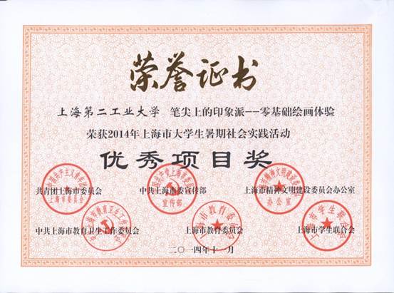 应用艺术设计学院两个项目荣获2014年上海市老员工暑期社会实践项目优秀项目奖